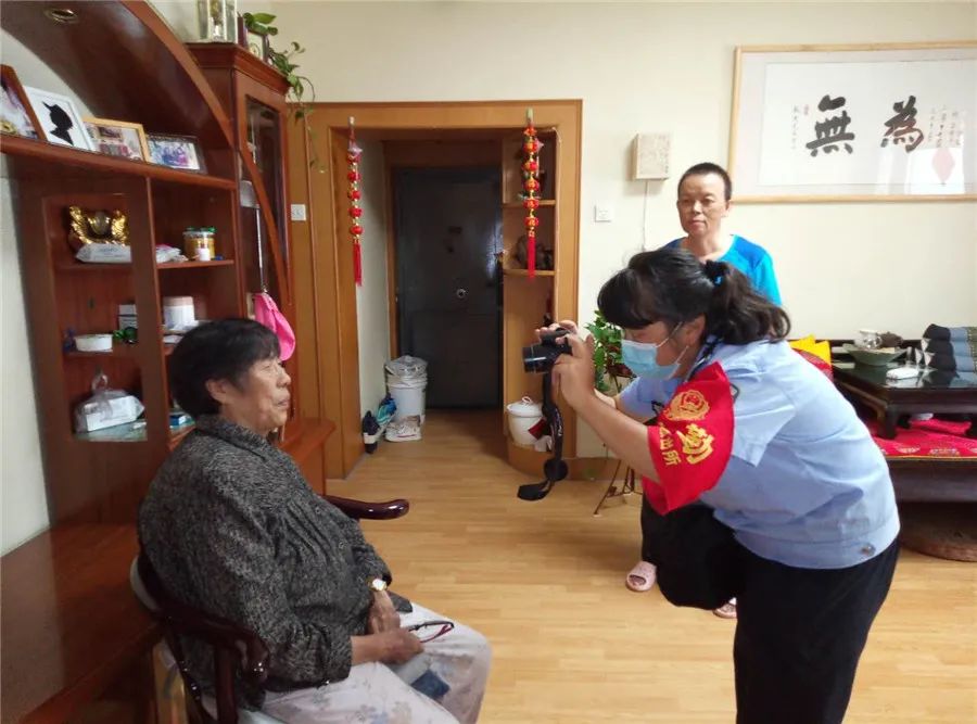 户籍民警杨柳热情的接待了邱女士,了解情况后,记录下了邱女士的联系电话及居住地址,让邱女士准备好相关材料并告知她会有工作人员上门为母亲采集办理身份证需要的照片。随后,社区中队的辅警小郭和小张与邱女士约定好时间,上门为邱女士的母亲拍照。