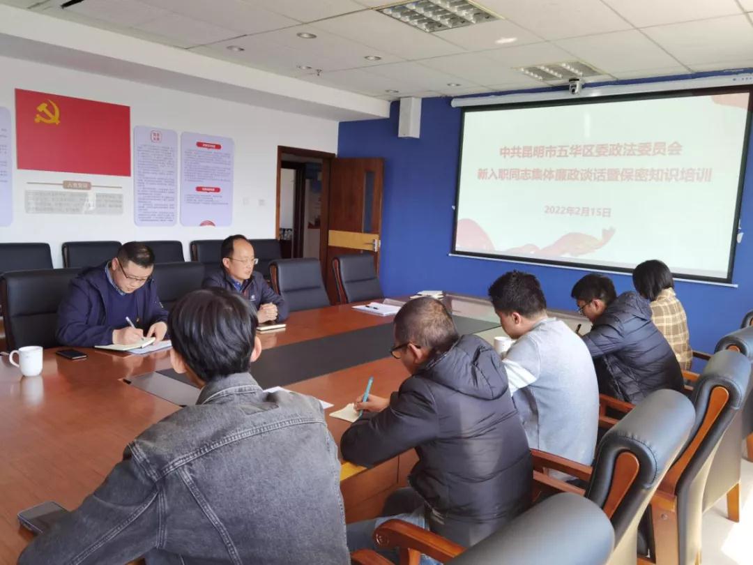 为增强新入职同志廉洁意识和保密意识,促进新入职同志认真履职尽责,遵守廉洁纪律和保密纪律,在今后的工作中守住底线,不越红线,严防出现各种腐败问题和失泄密案件。2022年2月15日下午,五华区纪委区监委派驻区委办纪检监察组组长雄伟对区委政法委新入职的8名同志开展集体廉政谈话,区委政法委保密专干向新入职同志进行保密知识培训。
