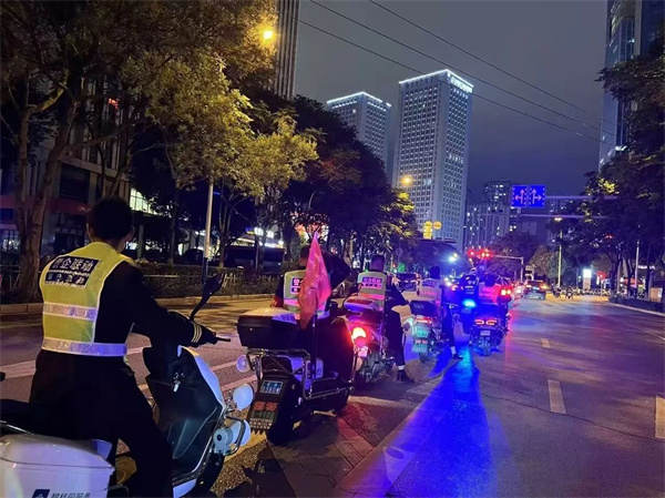 “我们辖区的夜市是热门打卡地,现在每晚人流量在3万人次左右。”章辉介绍,派出所立足辖区特点打造巡处一体新机制,积极拓展应急处突力量布点,将街道、社区、小区等人员纳入治安巡逻队,协助民警开展街面巡逻管控、宣传防范等工作,共同为夜经济保驾护航。