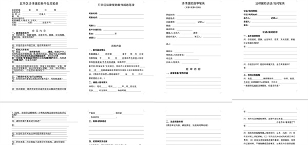 规范笔录模板,打造案件办理“标准尺”。针对阅卷、会见、庭审等关键环节笔录内容不完整、重点不突出的问题,五华区法律援助中心结合民事、刑事法律援助案件的不同特点,分别设计规范化的笔录模板。其中,阅卷笔录模板明确要求记录案件基本情况、嫌疑人基本情况、犯罪事实及证据摘录、证据分析等8项核心信息;会见笔录模板涵盖权利义务告知、事实核实、法律分析等关键内容;庭审笔录模板则突出举证质证、辩论意见等关键内容;谈话笔录细化受援人基本诉求、案件事实陈述、风险提示等模块,确保承办律师在办案过程中能够全面、准确地记录关键信息,有效避免因记录不详、要素缺失导致的办案疏漏,从文书制作层面保障案件办理的严谨性与规范性。