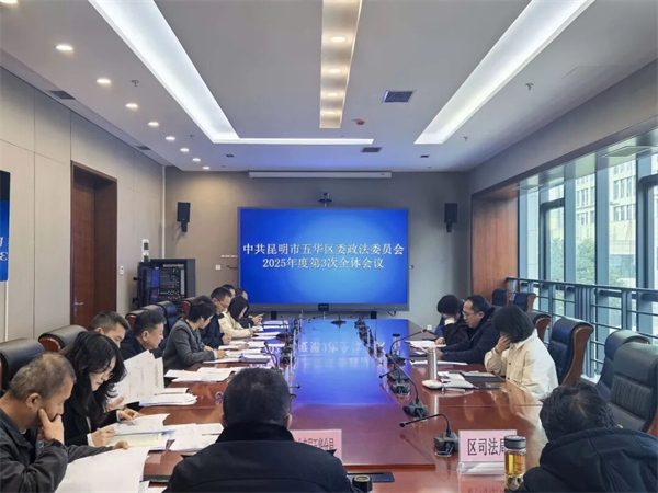 2025年12月26日,中共昆明市五华区委政法委员会召开2025年度第3次全体会议,传达学习习近平总书记近期重要讲话重要指示精神,听取政法重点工作情况汇报,研究部署下一步重点工作。中共昆明市五华区委常委、区委政法委书记周明主持会议,中共昆明市五华区委政法委员会副书记、委员参加会议。